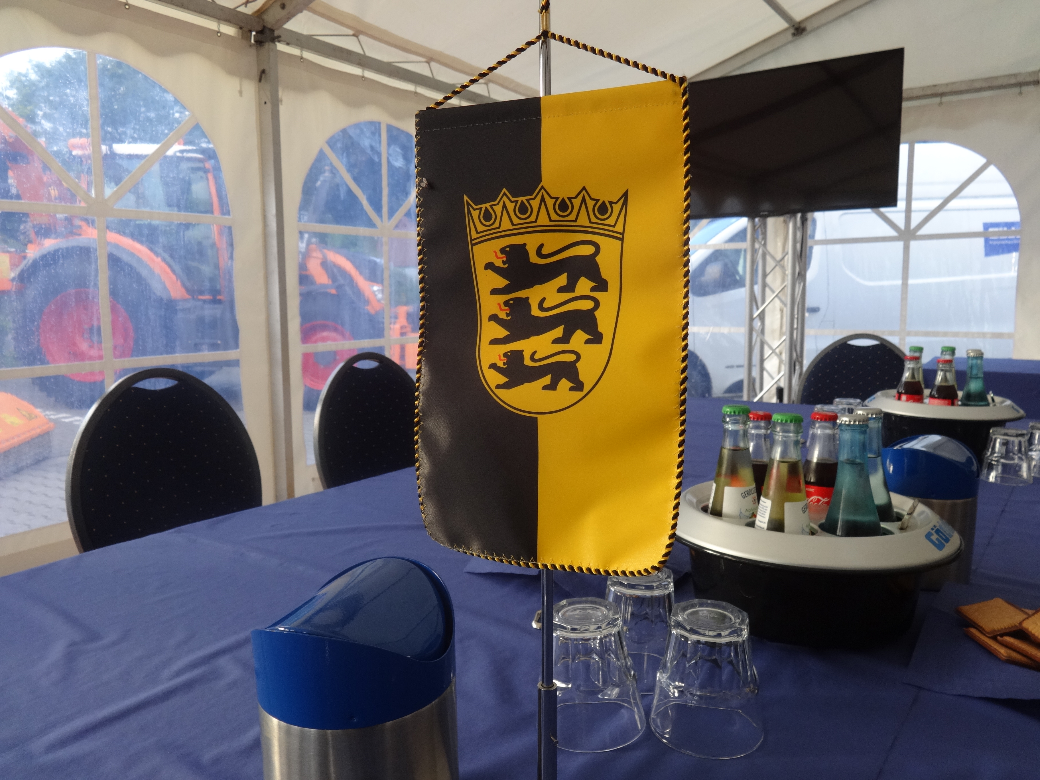 training place in a separately mounted tent. The Baden-Württemberg flag for MULAG should of course not be missing.